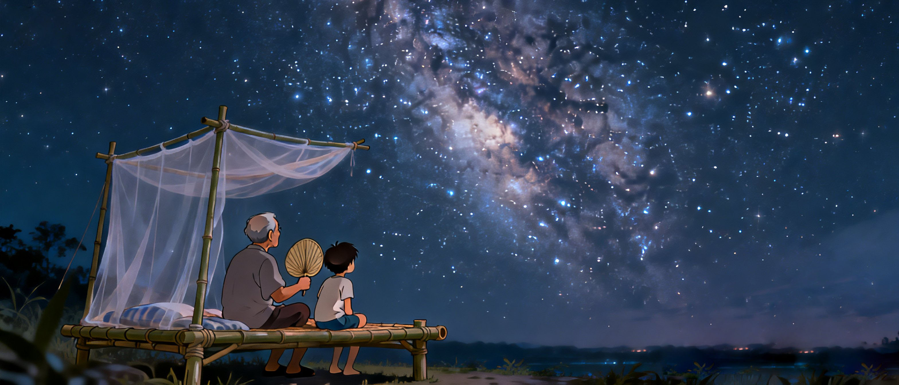 直至我大学时期前,每逢夏夜酷暑难耐,父母都会在楼顶摆竹床纳凉,爷爷则是一个人在楼下院子里摇着蒲扇纳凉。我自己是上下窜动,一会儿到楼顶看看电视,一会儿到院子里听爷爷讲讲故事。